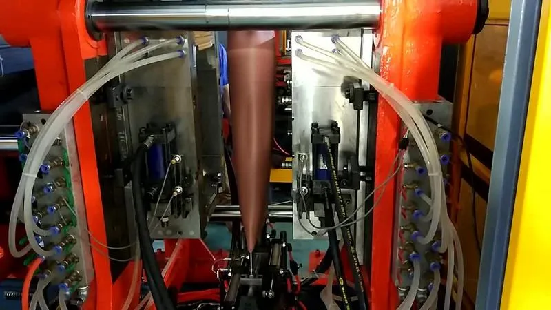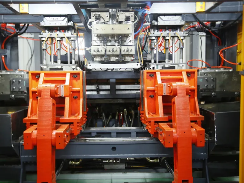 The clamping frame supports and secures the mould, ensuring precise alignment, providing necessary clamping force, and facilitating the mould opening and closing operations. Its performance directly affects the smoothness of the blow moulding process and the quality and consistency of the final products.